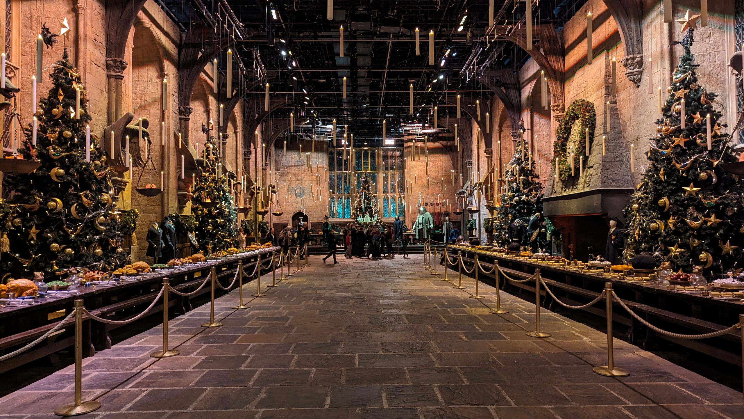Decorated especially for the festive season, the long tables are set for a sumptuous feast whose realism impresses. You almost feel like joining in the celebration. In the background, the famous Professor Dumbledore sits behind his desk, ready to announce the houses of the new students. The candles floating in the air and the striking authenticity of the sets truly give the illusion of being part of the film.