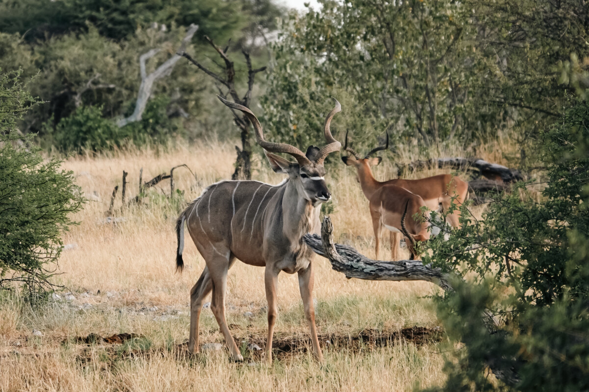 Gnous, antilopes et autres : au fil des pistes, on croise zèbres, gnous, springboks et oryx. Vers l’est, la diversité s’élargit avec koudous, impalas et dik-diks (la plus petite antilope d’Afrique), particulièrement visibles dans le secteur de Namutoni.